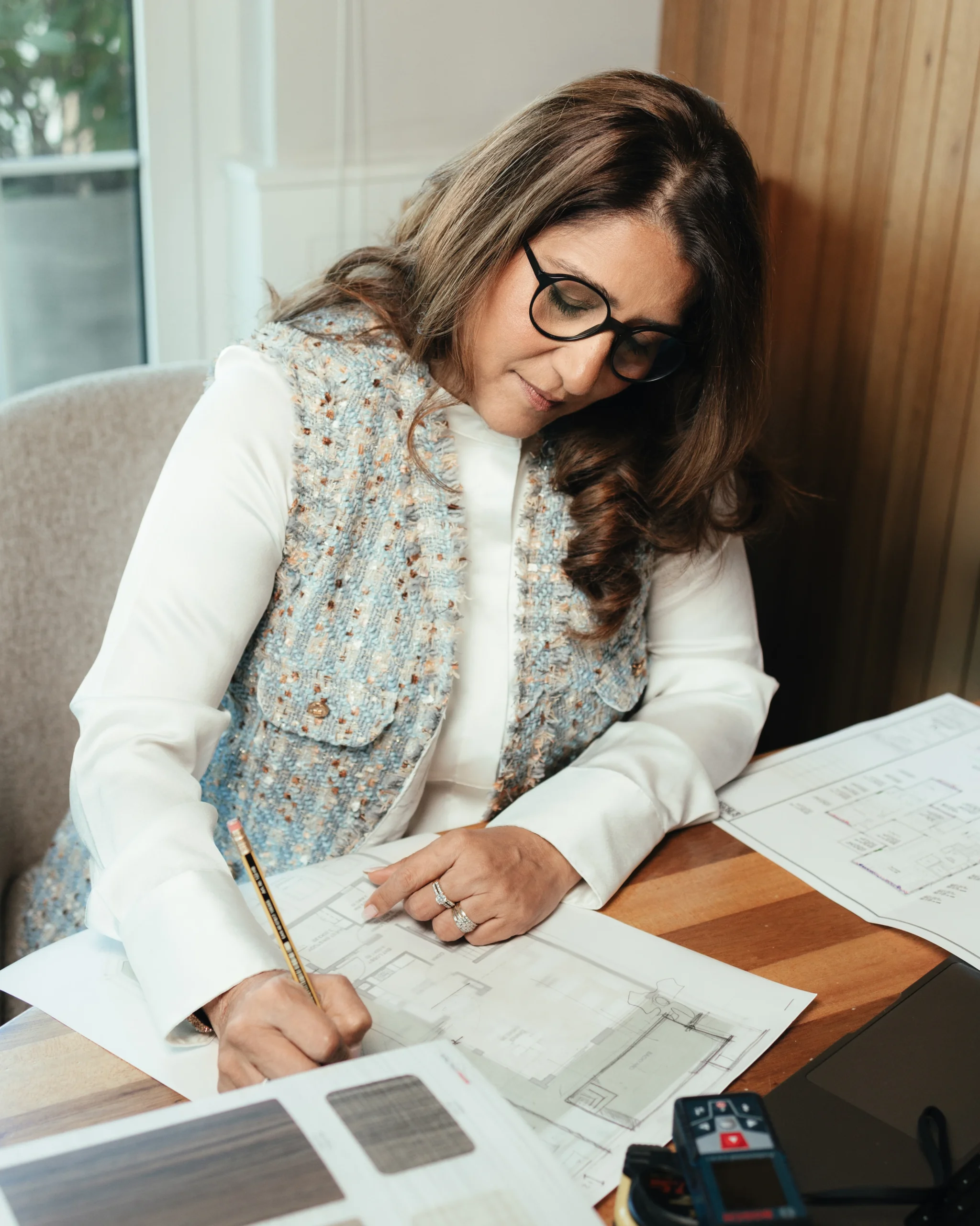 We begin with a one-on-one consultation—at your home or studio—where we walk through the space together, understand how you live, and talk about what you’re looking for. We take notes, photos, basic measurements, and start shaping the direction of your project.